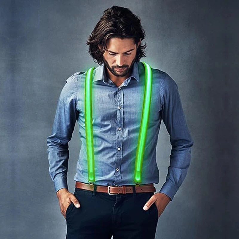 Rock this glowing set of suspenders at a club, bar, party, concert, or rave.