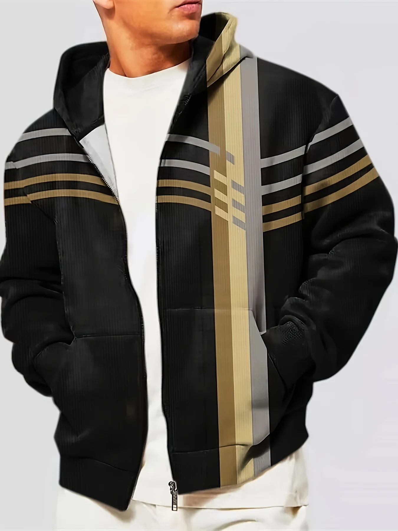 Printed jacket. Good size. Well packaged, fast delivery.