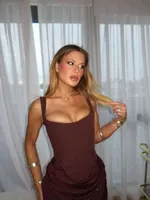 11 reviews for Mozision Backless Ruched Sexy Mini Dress Women Elegant Tapered Straps Square Collar Sleeveless High Waist Club Party Dress