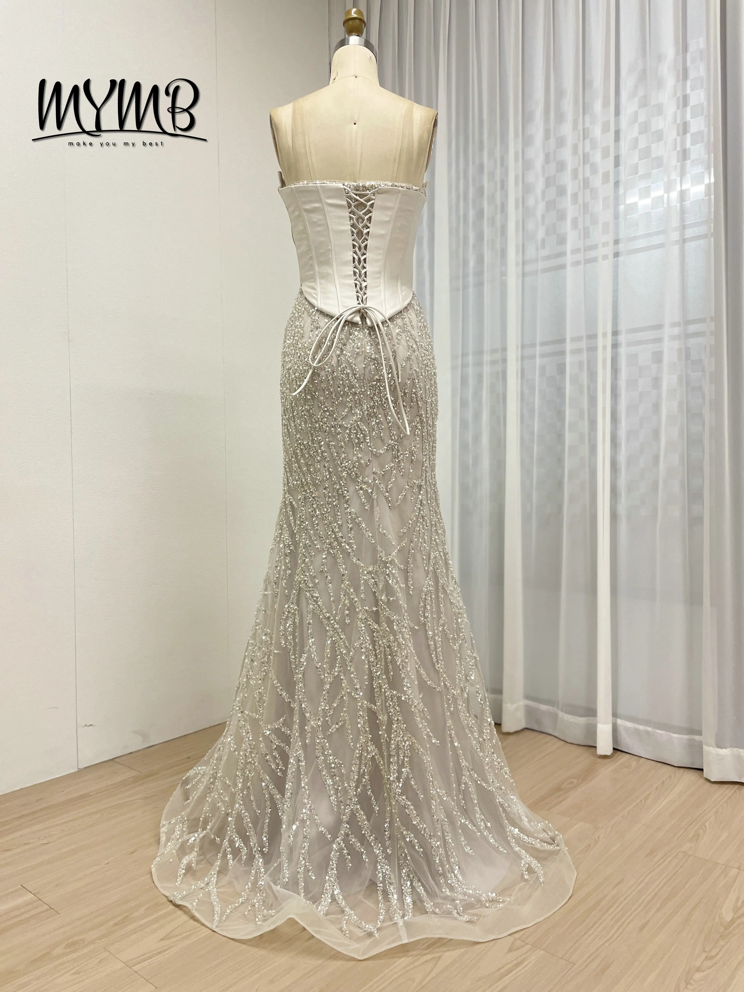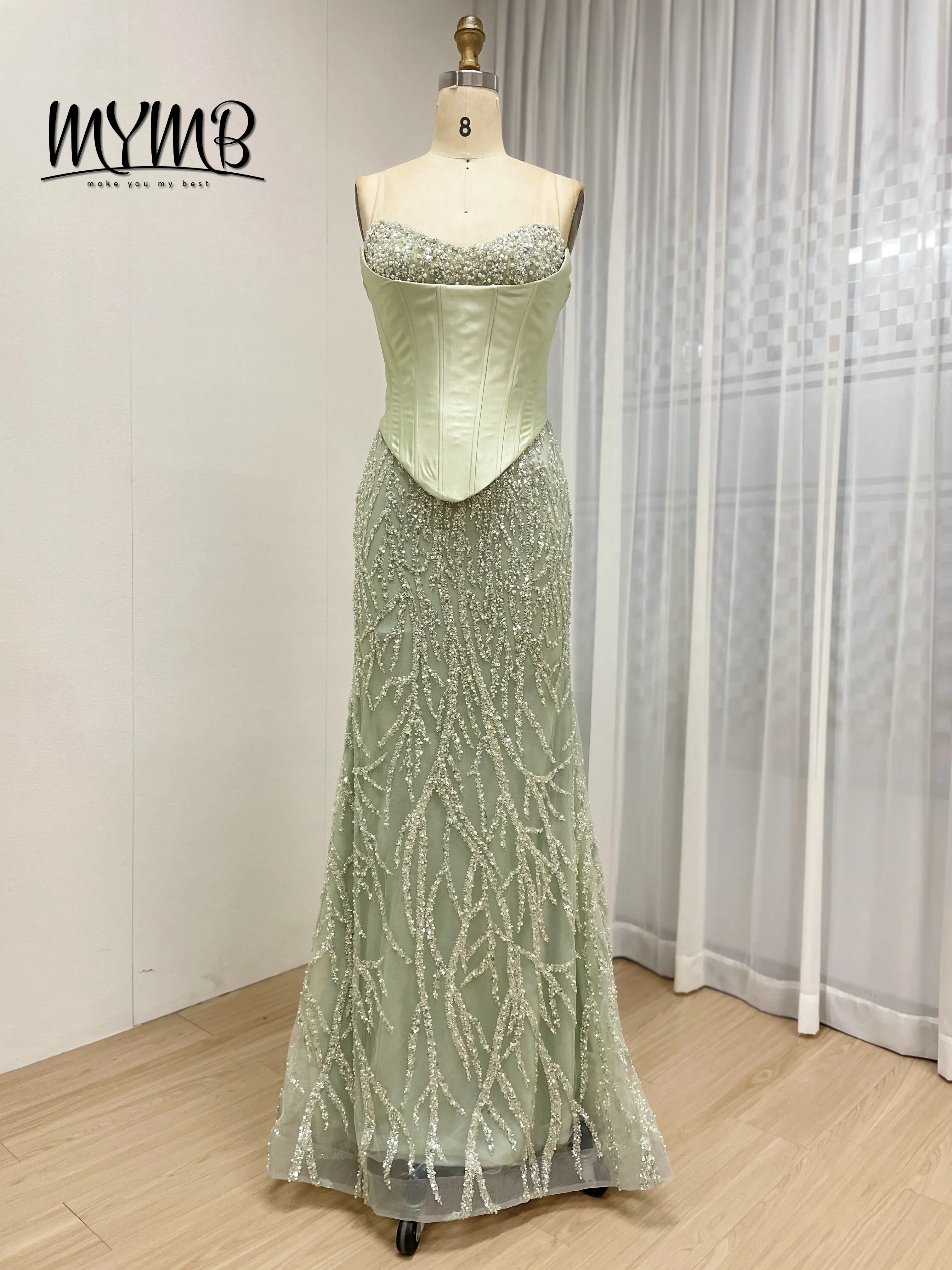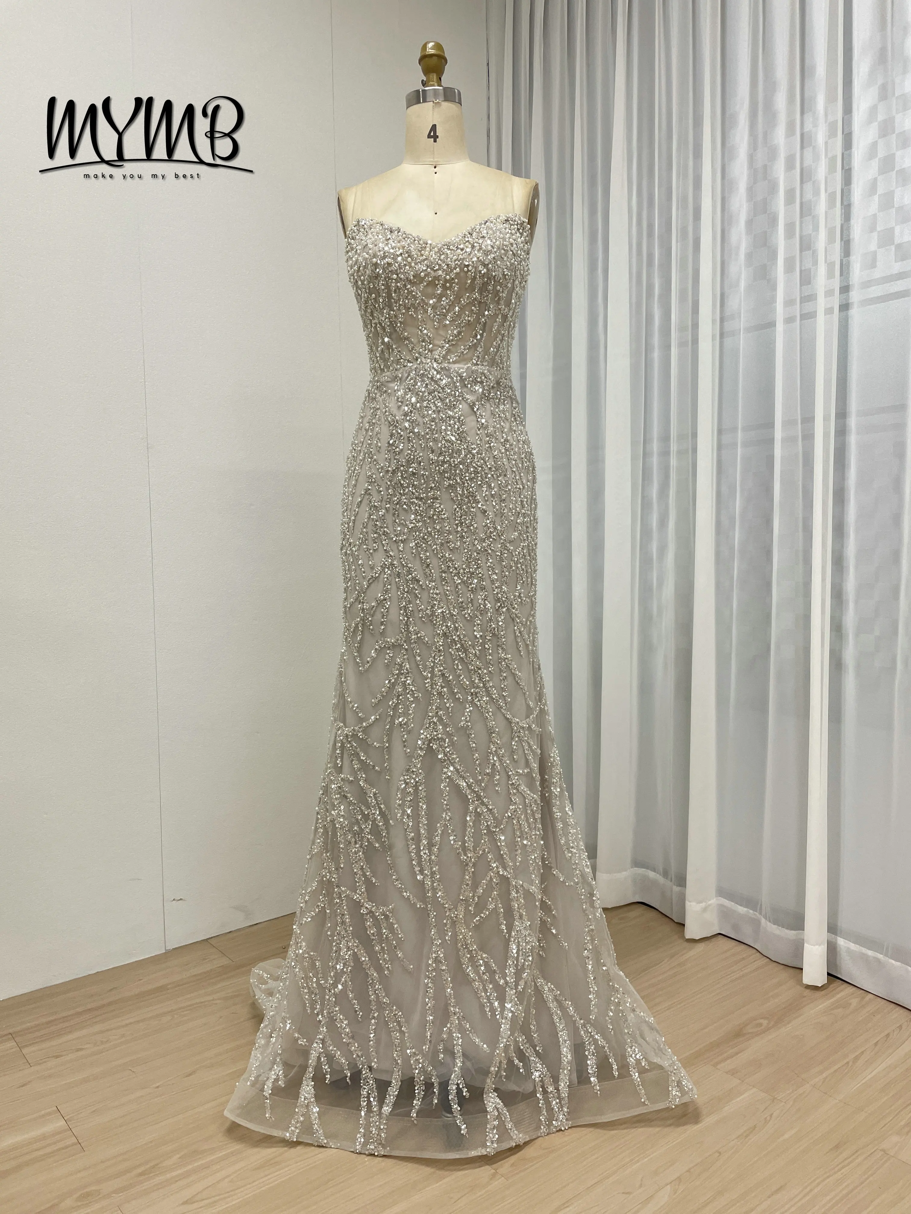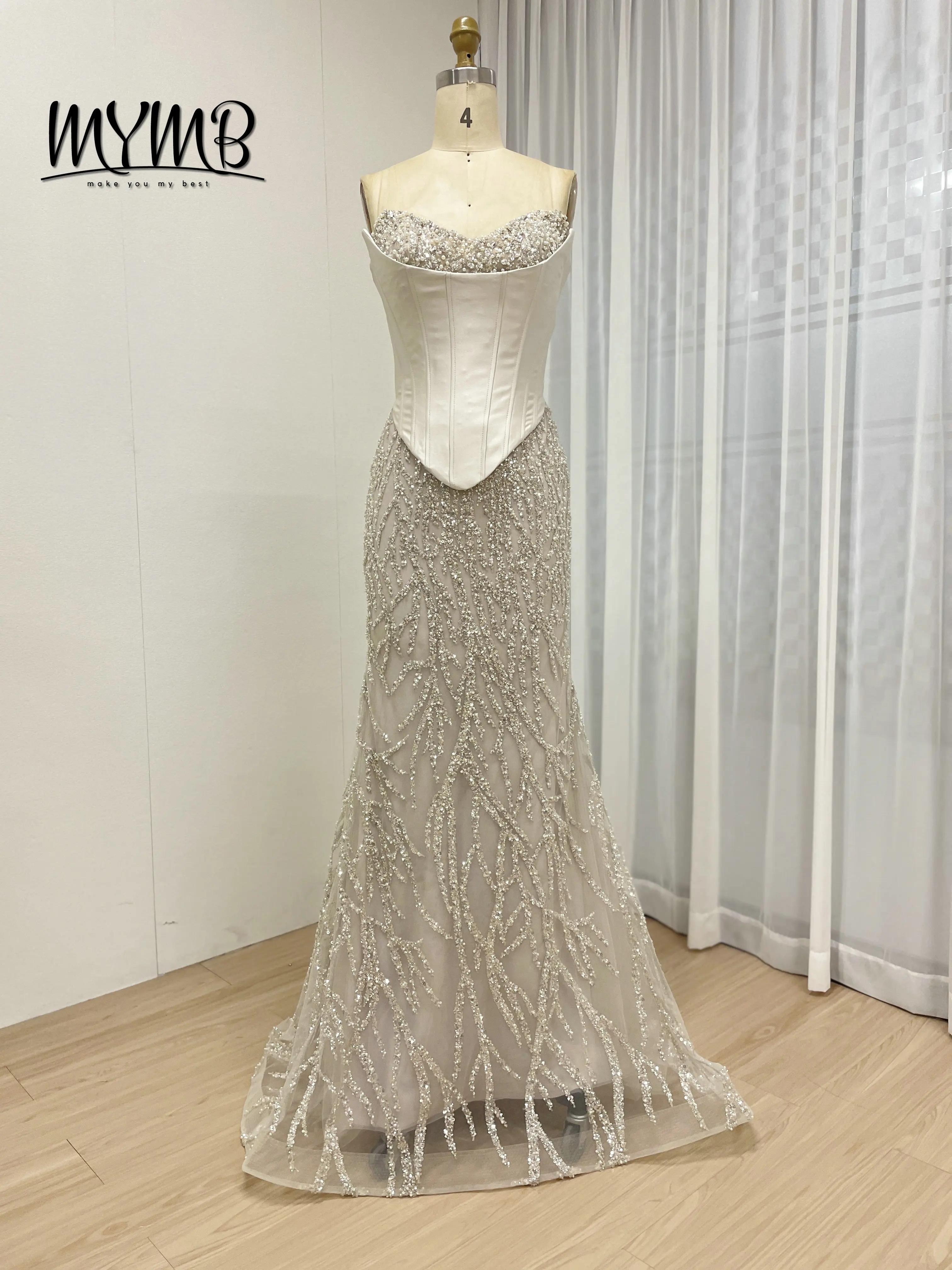MYMB Sophisticated Beaded With Strapless Corset Bodice Intricate Vine Pattern Sequins Mermaid Evening Dresses for Prom MB40362-2