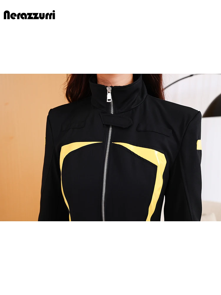 Nerazzurri Spring Autumn Extra Long Patchwork Maxi Dresses for Women Zip Up Elegant Luxury Designer European Fashion Emo Clothes