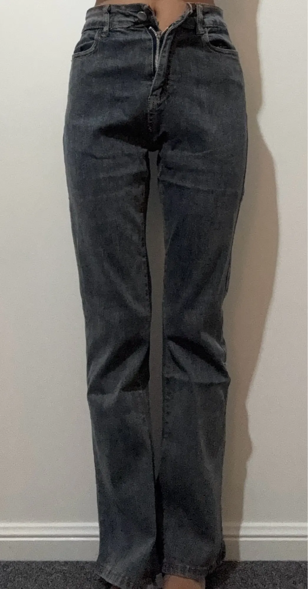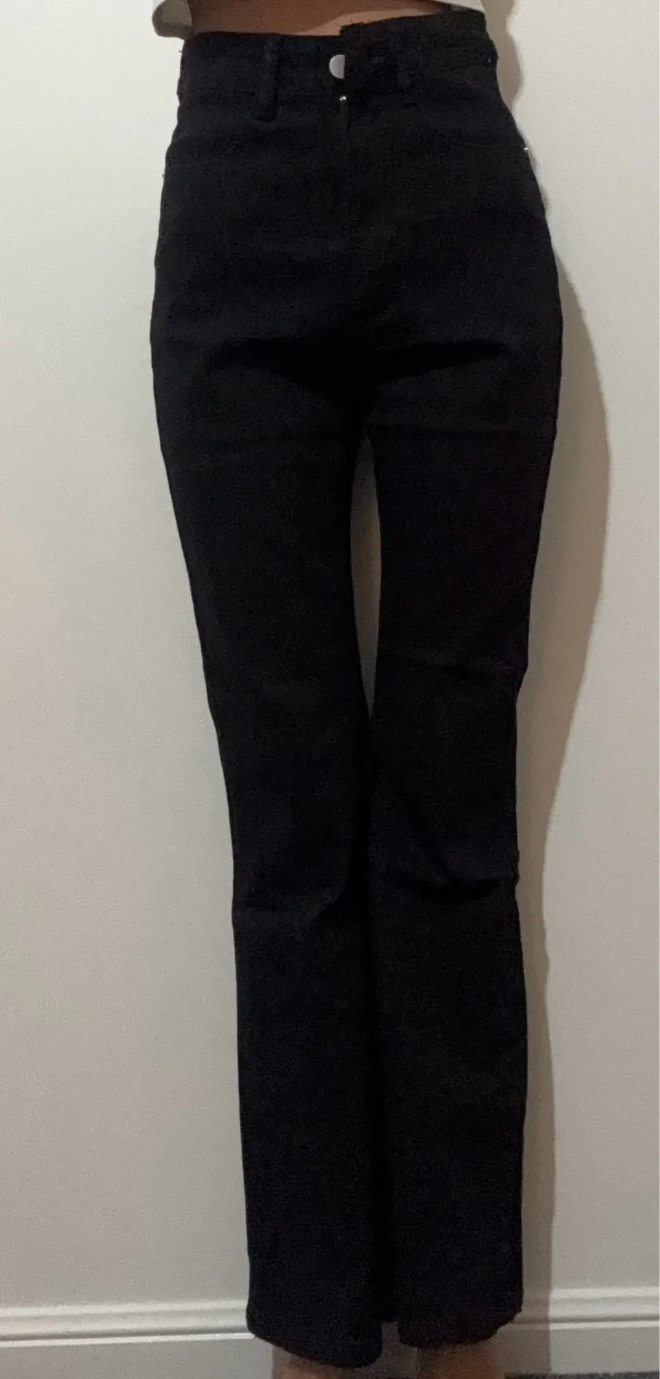 I really loved these jeans. The quality is very good for the price ($16.89). I purchased the black one in size xs, and i’m 5’2” for reference. I’d recommend sizing up if you plan to wear them with heels. The buttonhole comes stitched, but it’s easy to cut open with scissors or a knife.