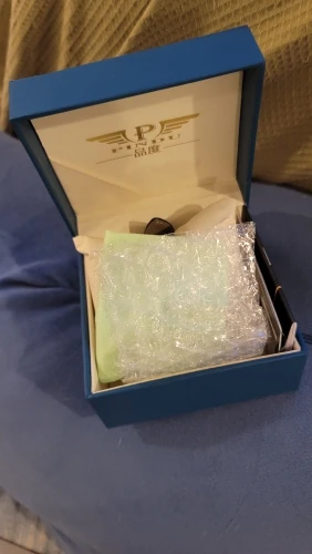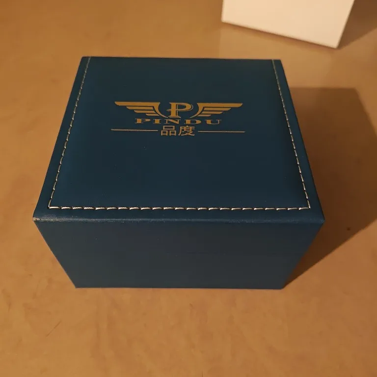 it looks slightly cheap but it’s and automatic watch boxed nice and did not like the end buckle clasp style works and looks good my gambler family member will love it