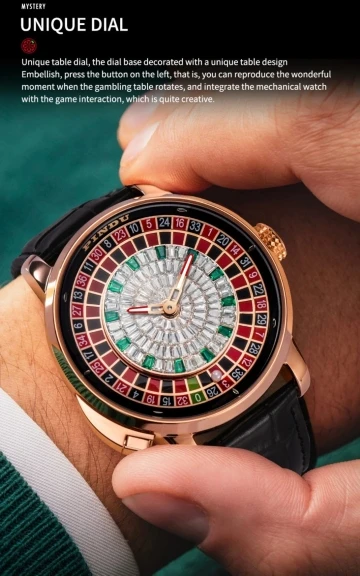 A roulette watch spins time with elegance, blending chance and precision in a mesmerizing dance of style.