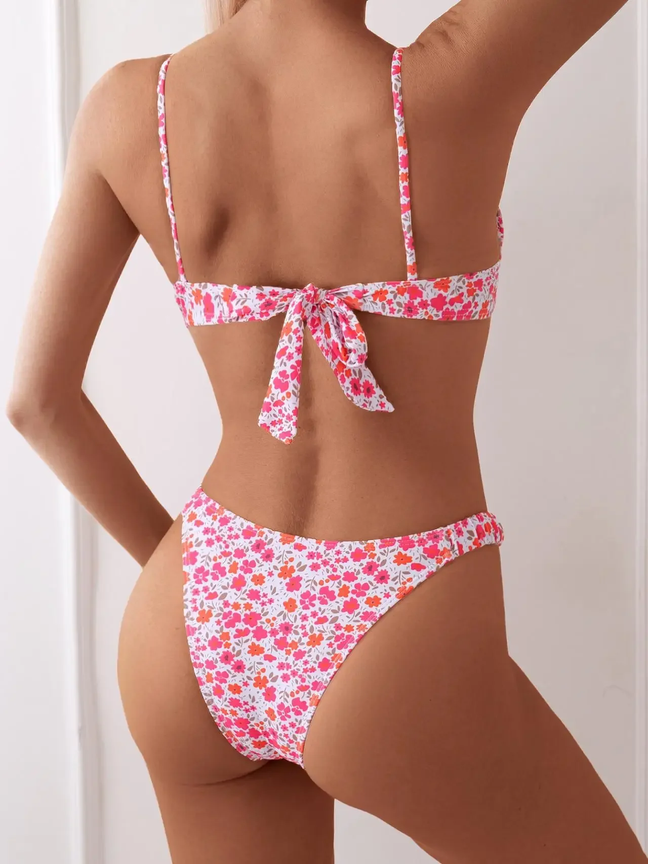 Pink Floral Print micro Bikini Women Swimwear 2025 Brazilian Beach Push Up Pleate Tie Underwire Bathing Suit Two Piece Swimsuit