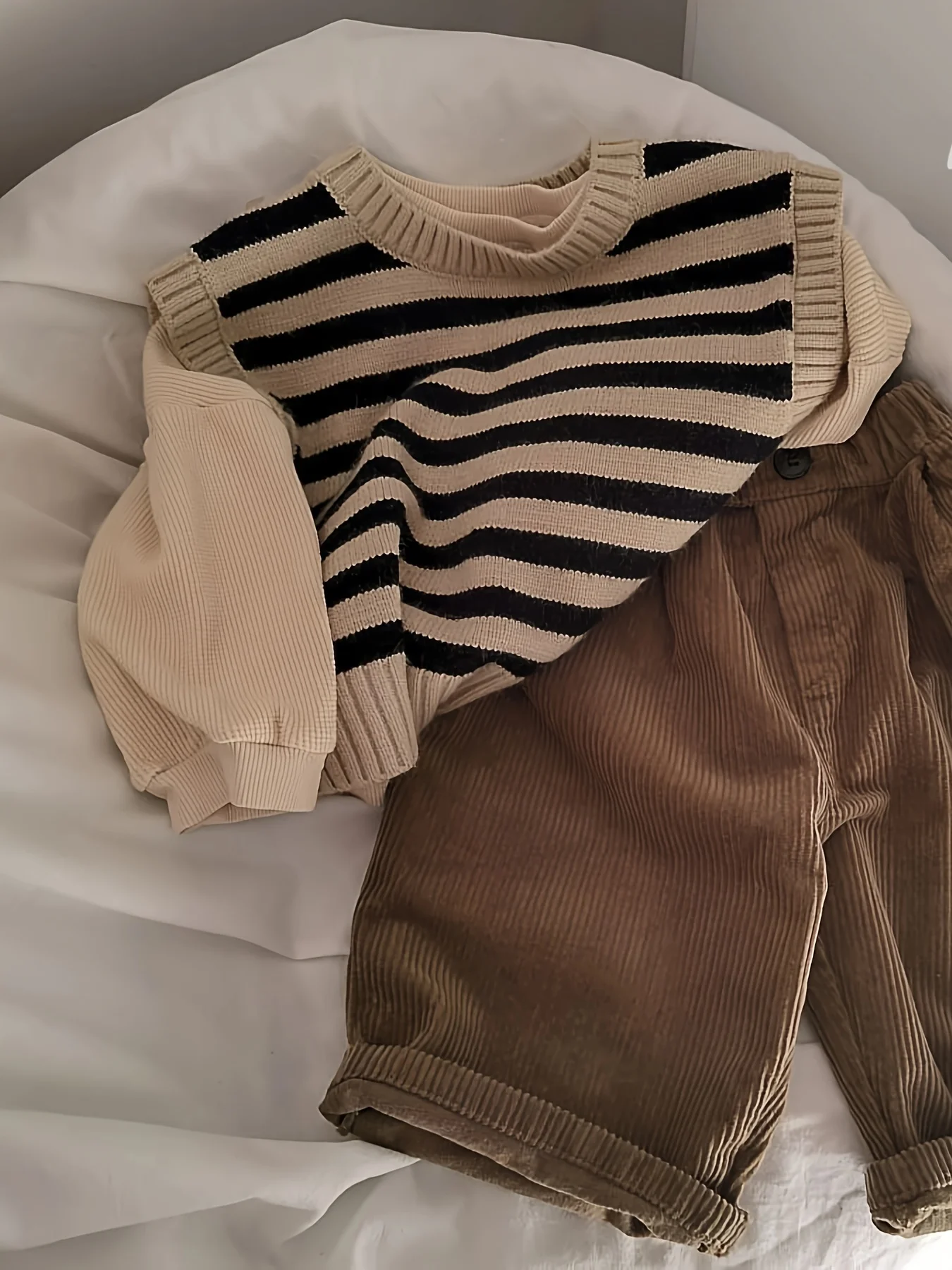 Height 83 cm, weight 12 kg, 20-month-old baby fits a bit loosely but looks pretty.