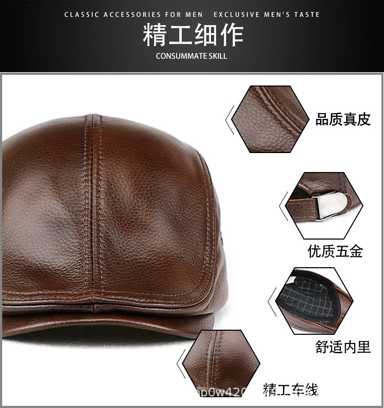 Designed for both men and women, this beret's retro brown hue and real leather finish make it a versatile addition to any wardrobe.