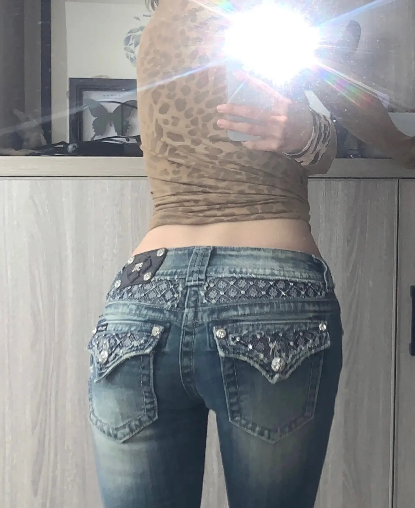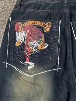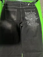 5 reviews for Retro Miss Me Boot Cut Jeans Female Y2K New Blue Jeans Embroidered Wing Pocket Hip Hop Harajuku Gothic Wide Pants Street Wear
