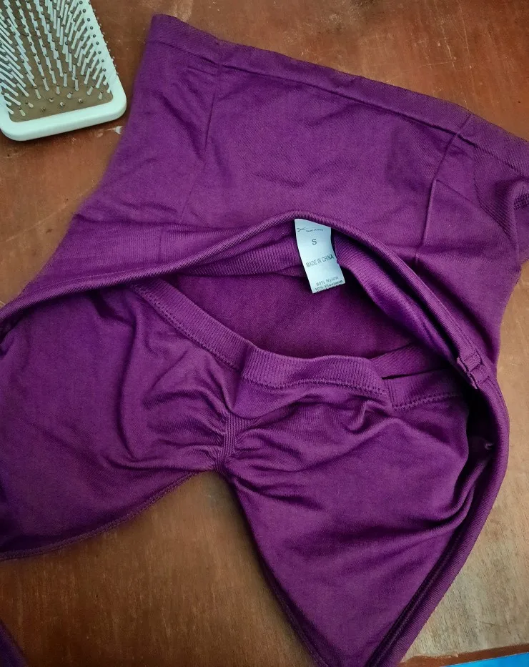 The size I ordered is M, but it seems like it was size L or XL, it’s too big, unfortunately it didn’t fit me. The sizes are not accurate; in another color, the S was too small for me, so I ordered M in this color, but it’s huge. However, the quality is excellent, the fabric is very soft, and it comes with its cups.