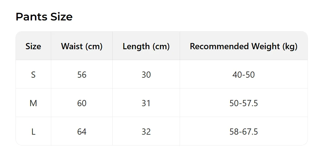 | size_info | {"sizeInfoList":[{"length":{"cm":"62", "inch":"24.41"}, "size":"S", "vid":-1}, {"length":{"cm":"66", "inch":"25.98"}, "size":"M", "vid":-2}, {"length":{"cm":"70", "inch":"27.56"}, "size":"L", "vid":-3}]} |
