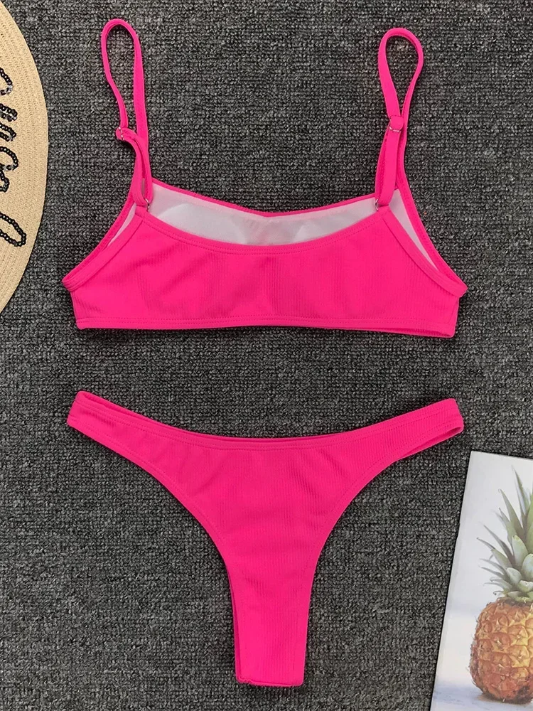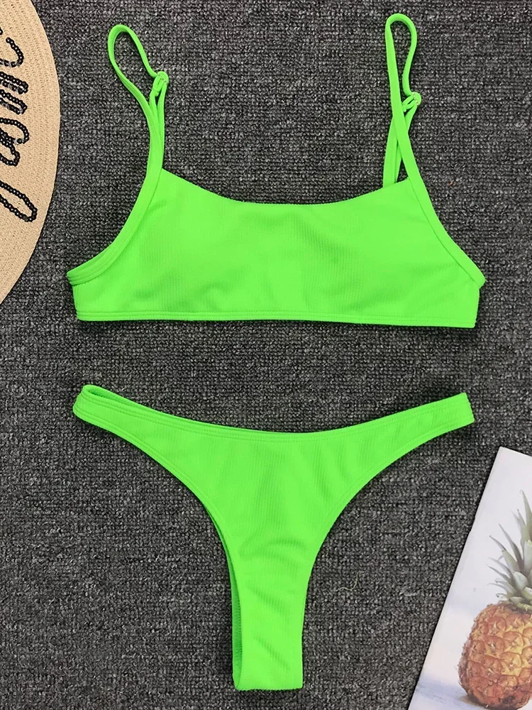 Sexy Neon Yellow Ribbed Brazilian Bikini Women Swimwear Female Swimsuit Two-pieces Bikini Set High Cut Bather Bathing Suit Swim
