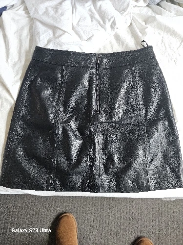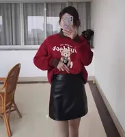 The length of the leather skirt is just right, it looks good when paired with sweaters, leather jackets, and shirts