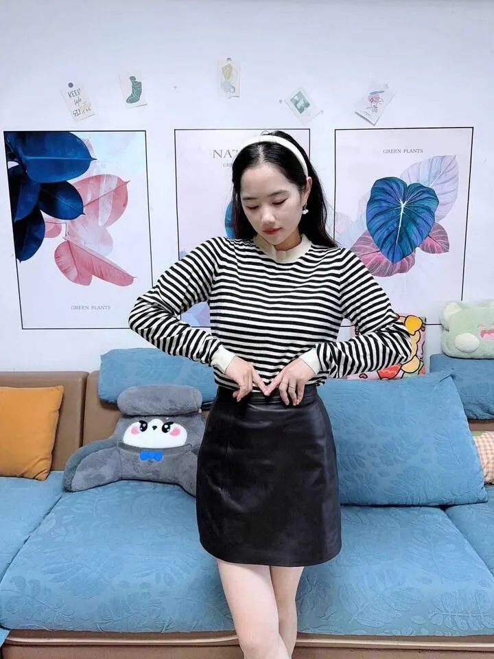 6 reviews for Sheepskin Leather Skirt Women 2024 Fashion New High Waist Skirt Spring Autumn Slim Mini Skirt Genuine Leather Shorts Boots Y2k