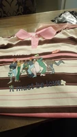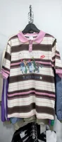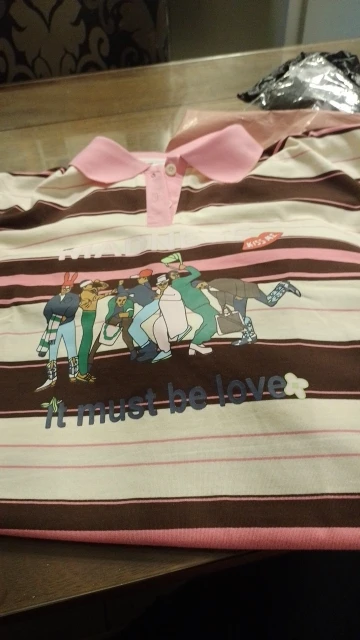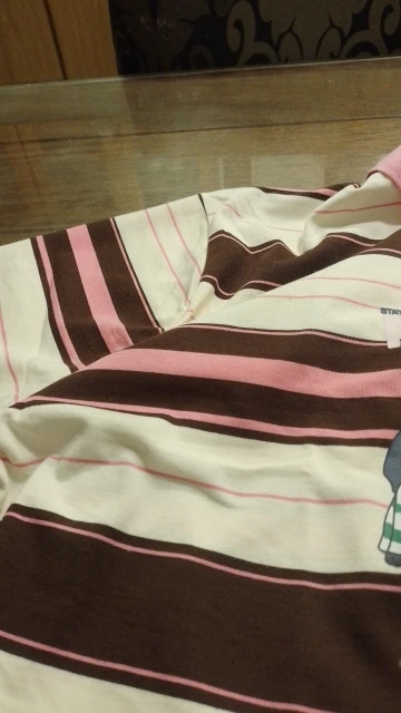 I really want to give it three stars. ⭐ for the primitive cut. It looks like it’s sewn on the knee. The stripes on the back and front shelf do not match at all. The sleeve is sewn wide, as if taken from size 56-58. There are threads hanging from the edge finishing on the inside. The packaging is perfect, in a zip bag, with a cardboard pad. There are sewn-in tags indicating 100% cotton. Overall, it looks fun, the sticker is made carefully, I hope it will withstand the summer season. The pink color on the polo is quite bright. The size chart is correct. Thanks to the seller for the fast shipping.