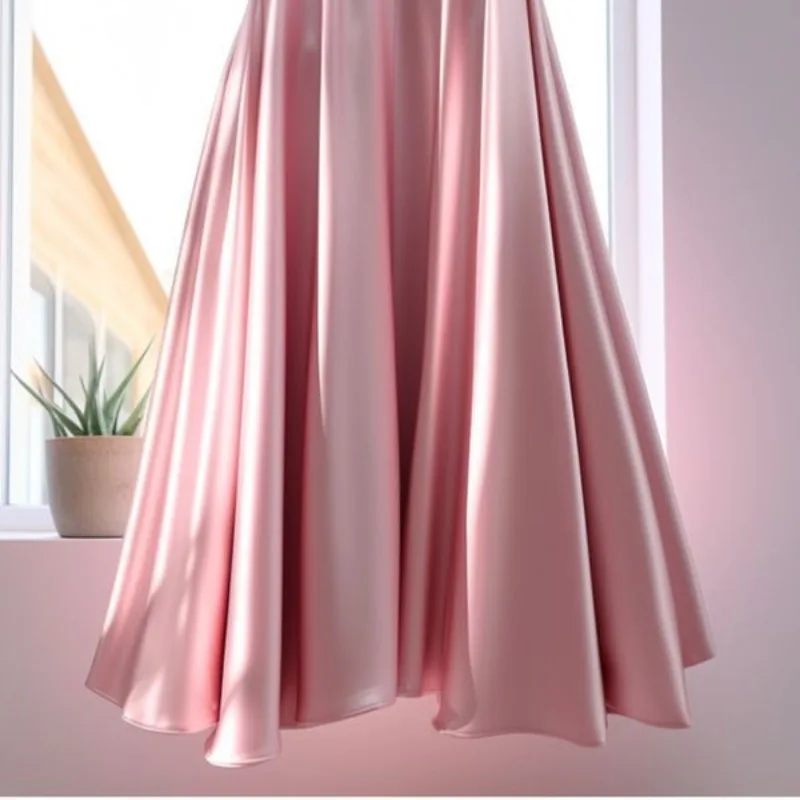 Simplicity Office Lady Summer Women’s Solid Elastic Waist Pleated Fashion Elegant Versatile High Waist Mid-length A-line Skirt