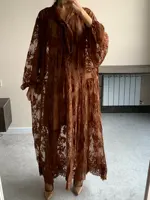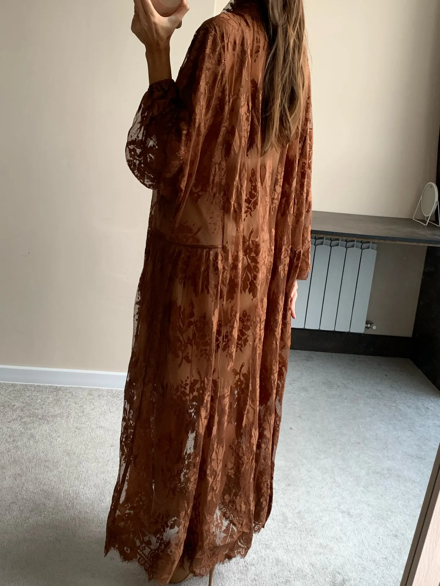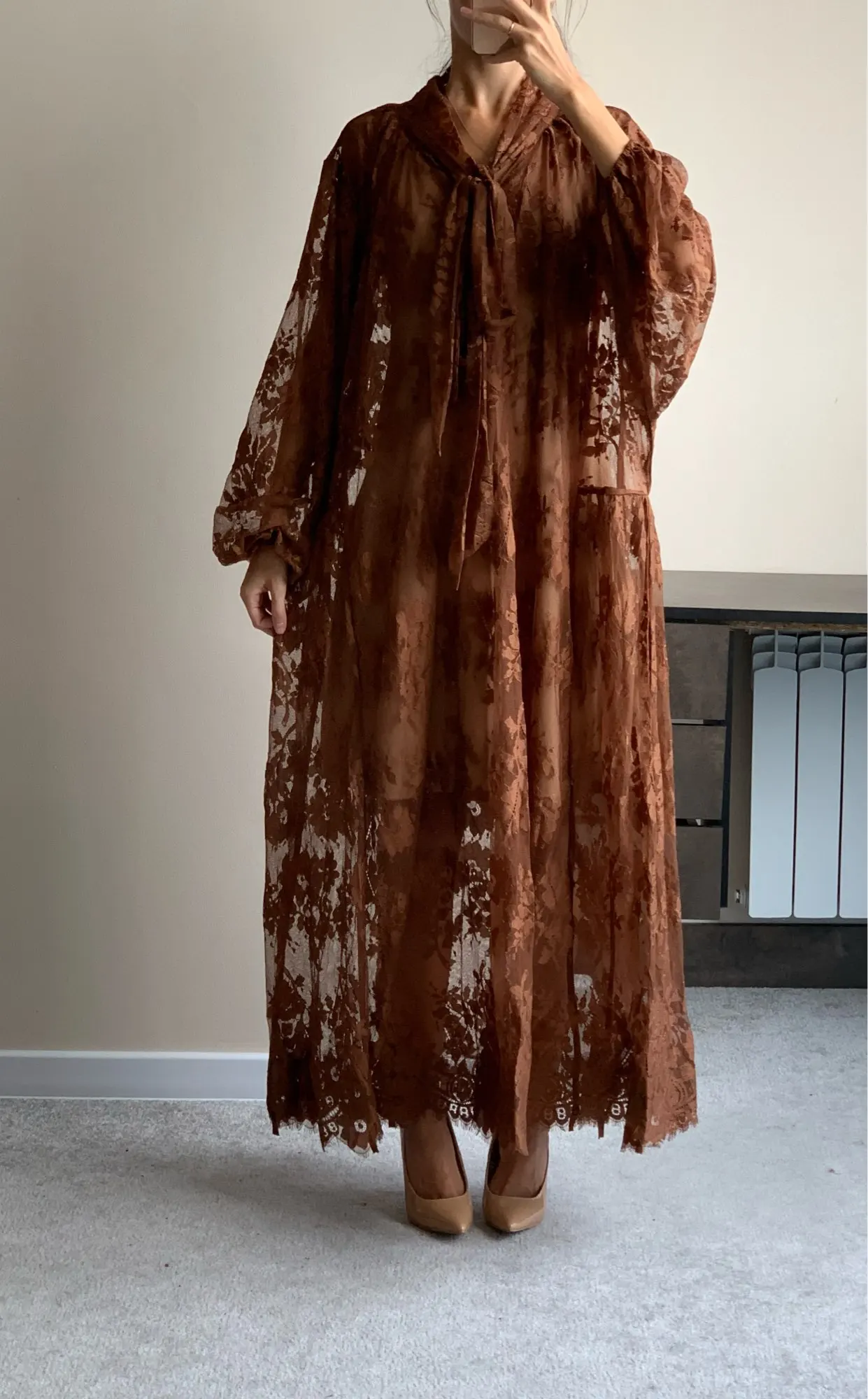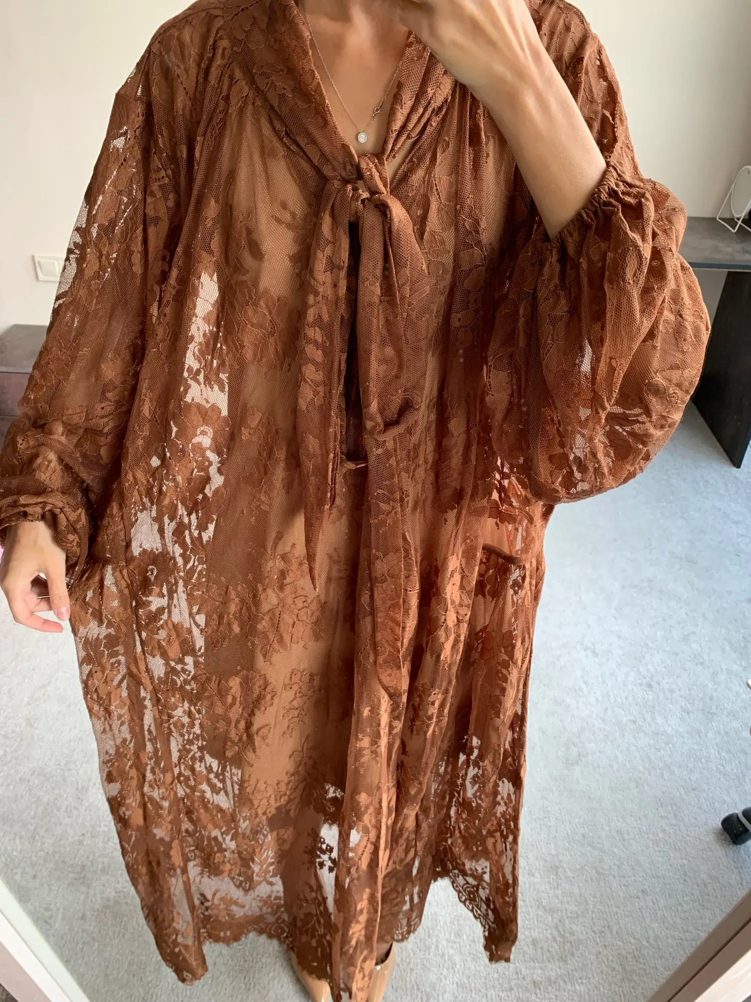 2 reviews for SINGREINY High Street Lace Loose Dress Bow Collar Long Lantern Sleeve Oversize Dress Autumn Thin Vintage Senior 2 Pieces Dresses