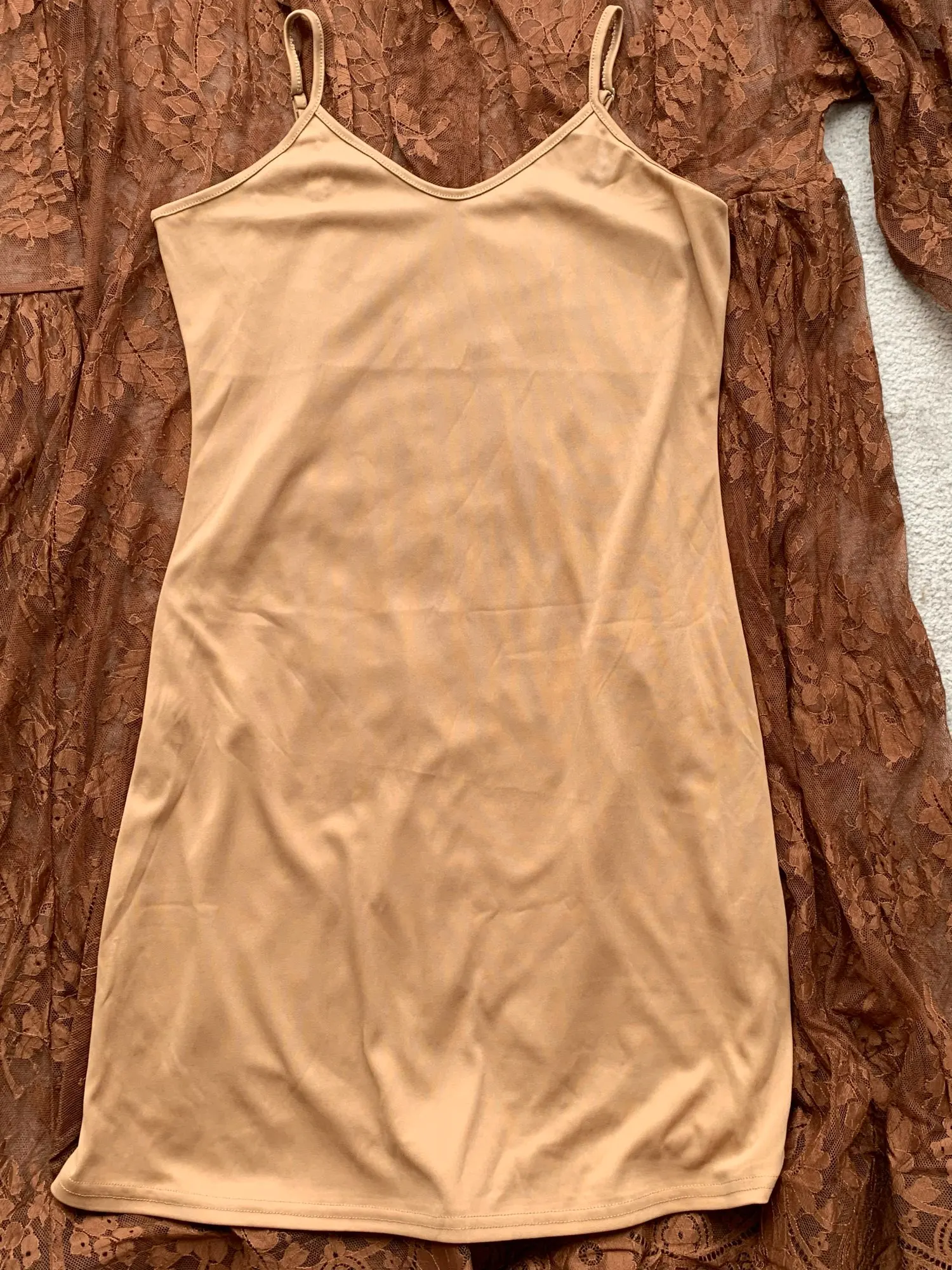 An interesting loose-fitting dress suitable for larger sizes as well. Oversized. The material is not bad. There is a lining inside the dress. I recommend it.