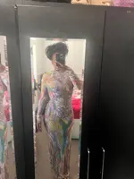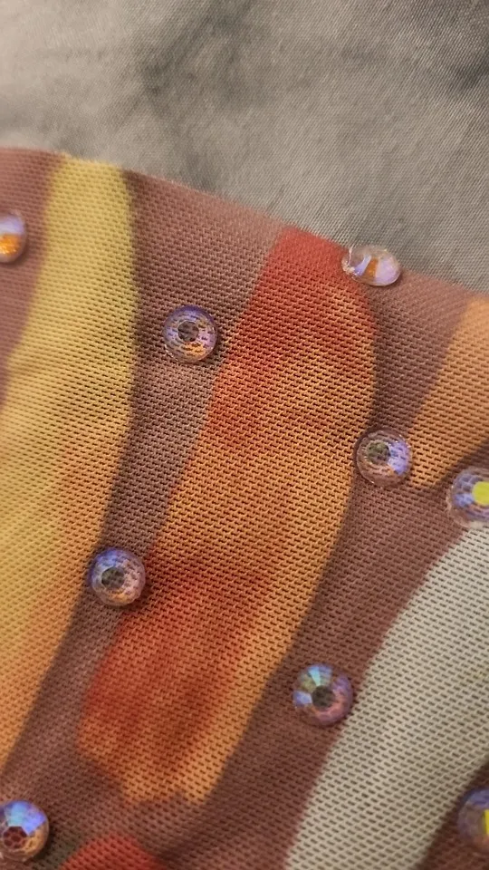 The dress was missing rhinestones. Not professional. Very disappointed. 😒 😒 😒 😒 😒