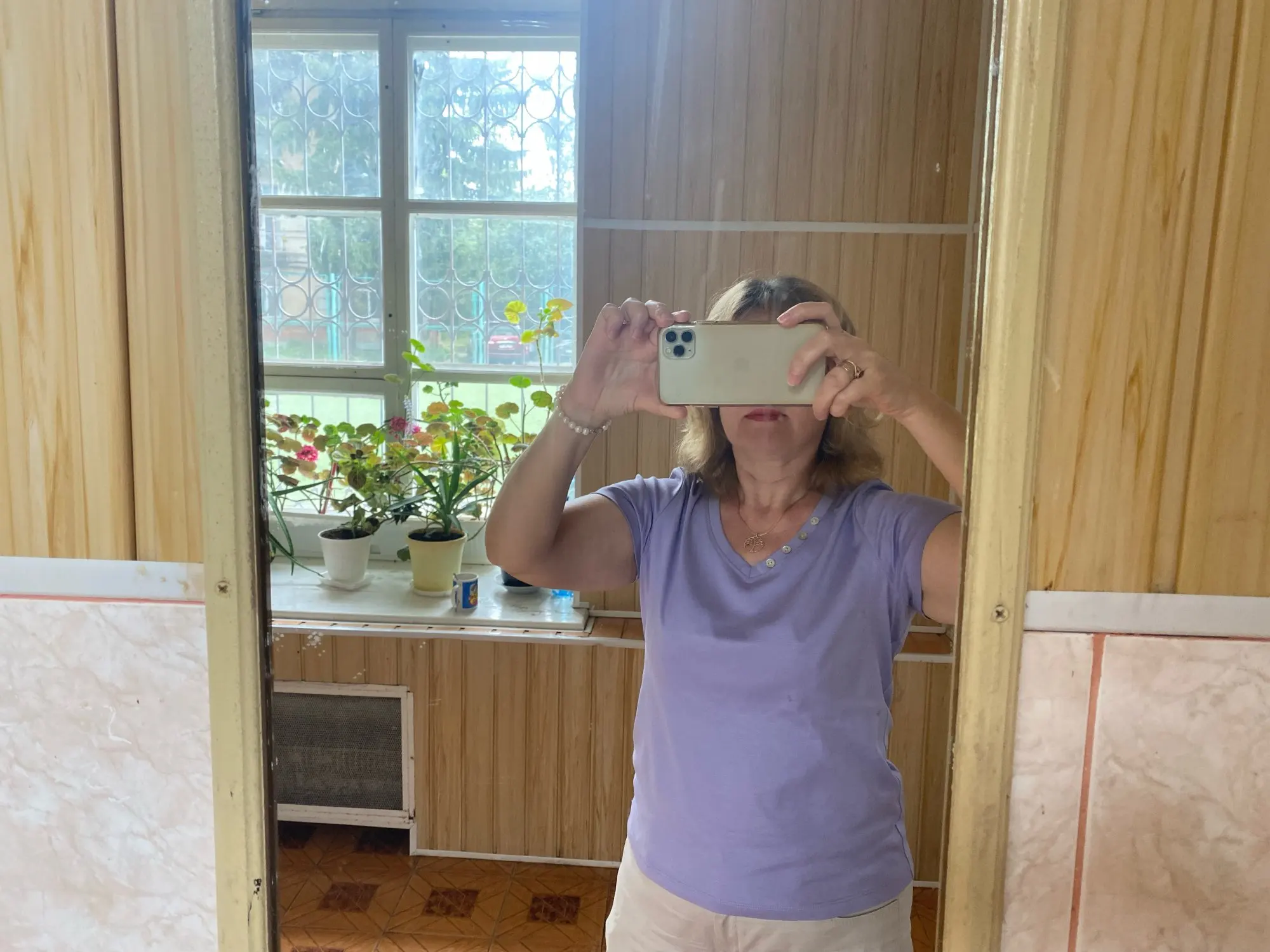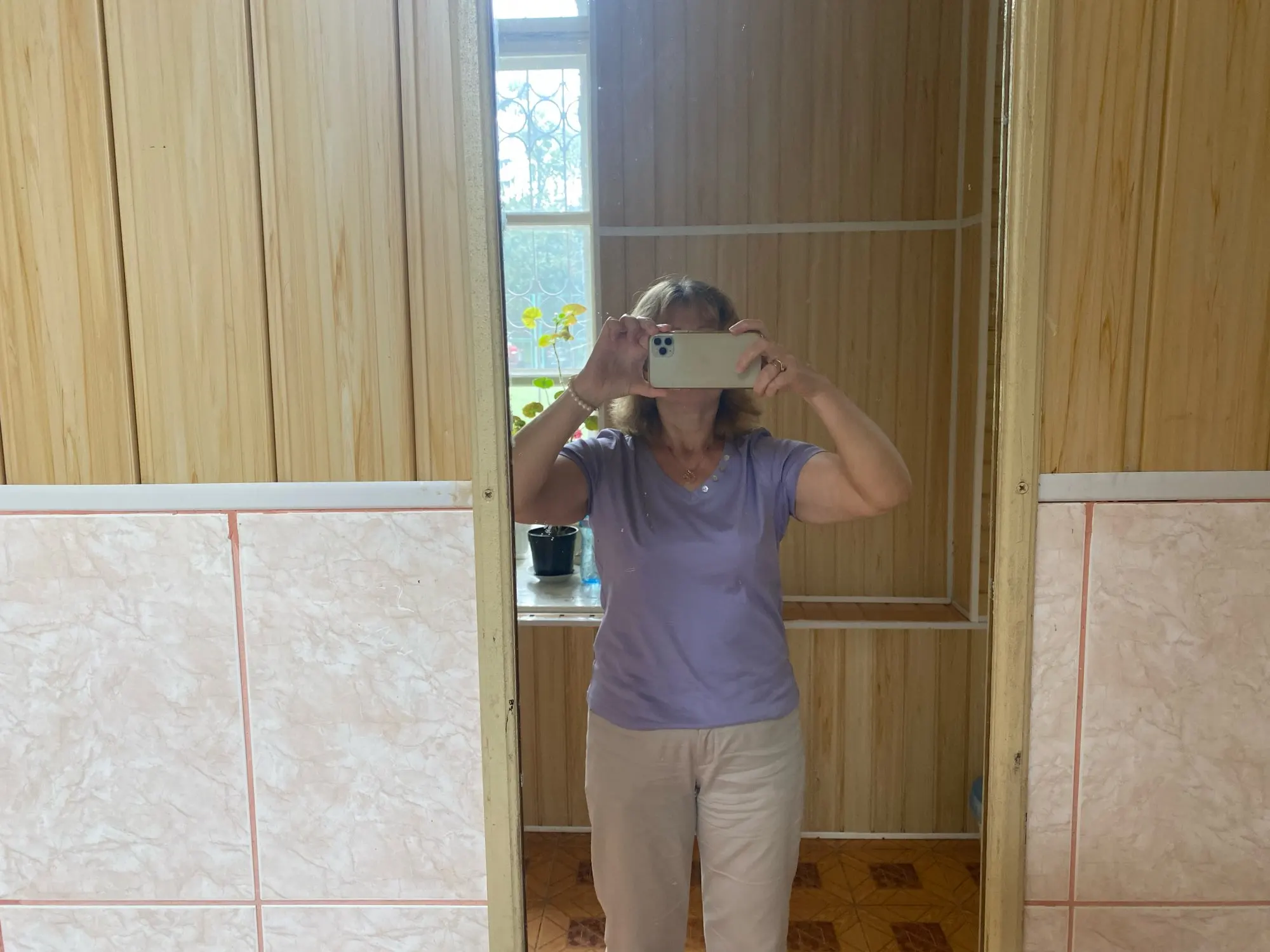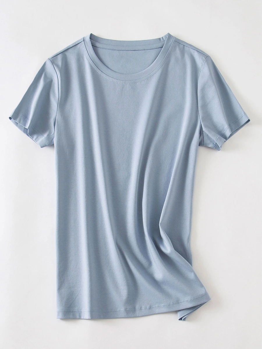 The T-shirt is of good quality. It has a silky appearance. The color is better than in the photo. Pleasant to the touch. It’s necessary to take a size larger.