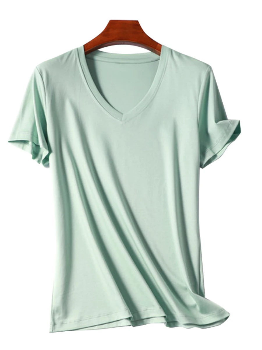 T Shirt Women 2025 Summer V-neck Short Sleeve Cotton Casual Solid Top Tees Loose T-shirts Basic Ladies Shirt Tops Woman Tshirts