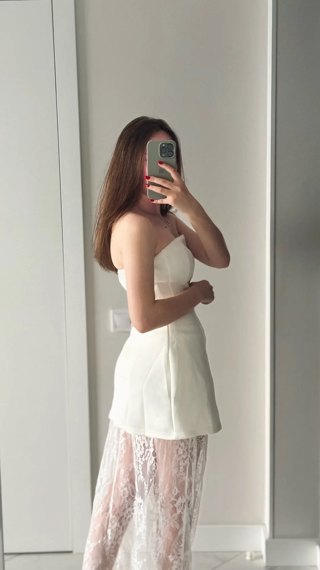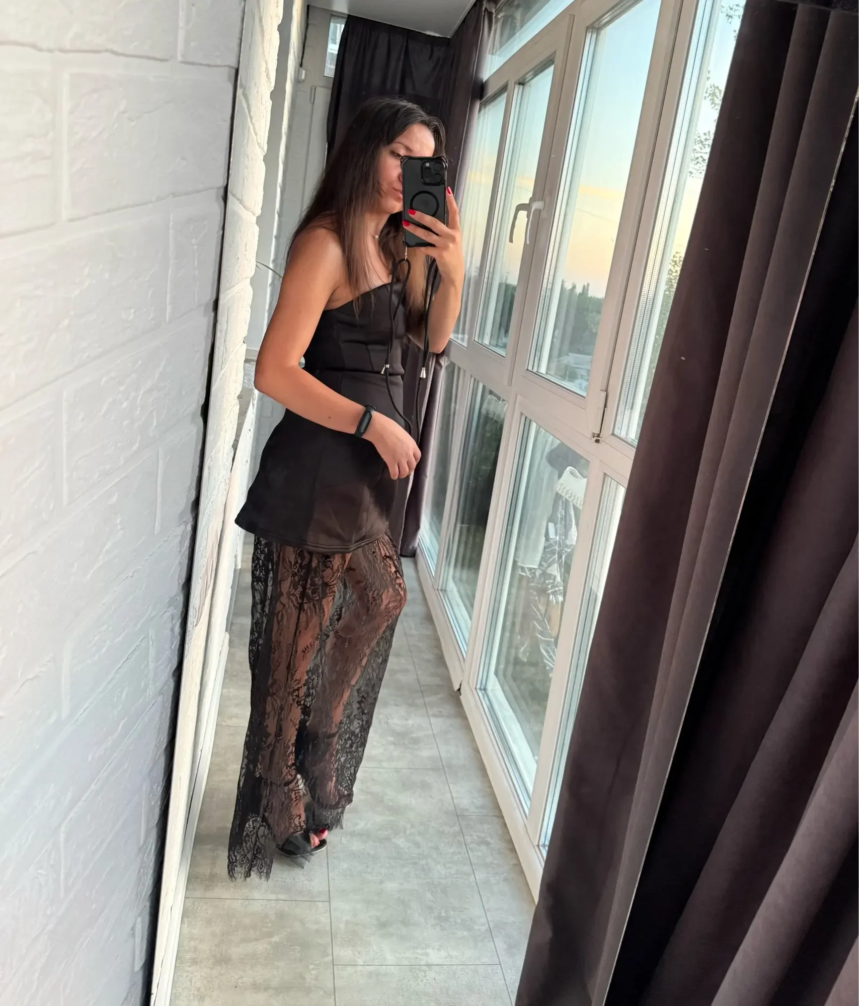 The dress exceeded expectations! The upper part is tight, holds well without straps, does not slip. The material is pleasant to the touch, the sewing quality is excellent. I especially liked the lace bottom — it looks very delicate and effective, creating a nice silhouette. A lace skirt with shorts, made of the same material as the top.