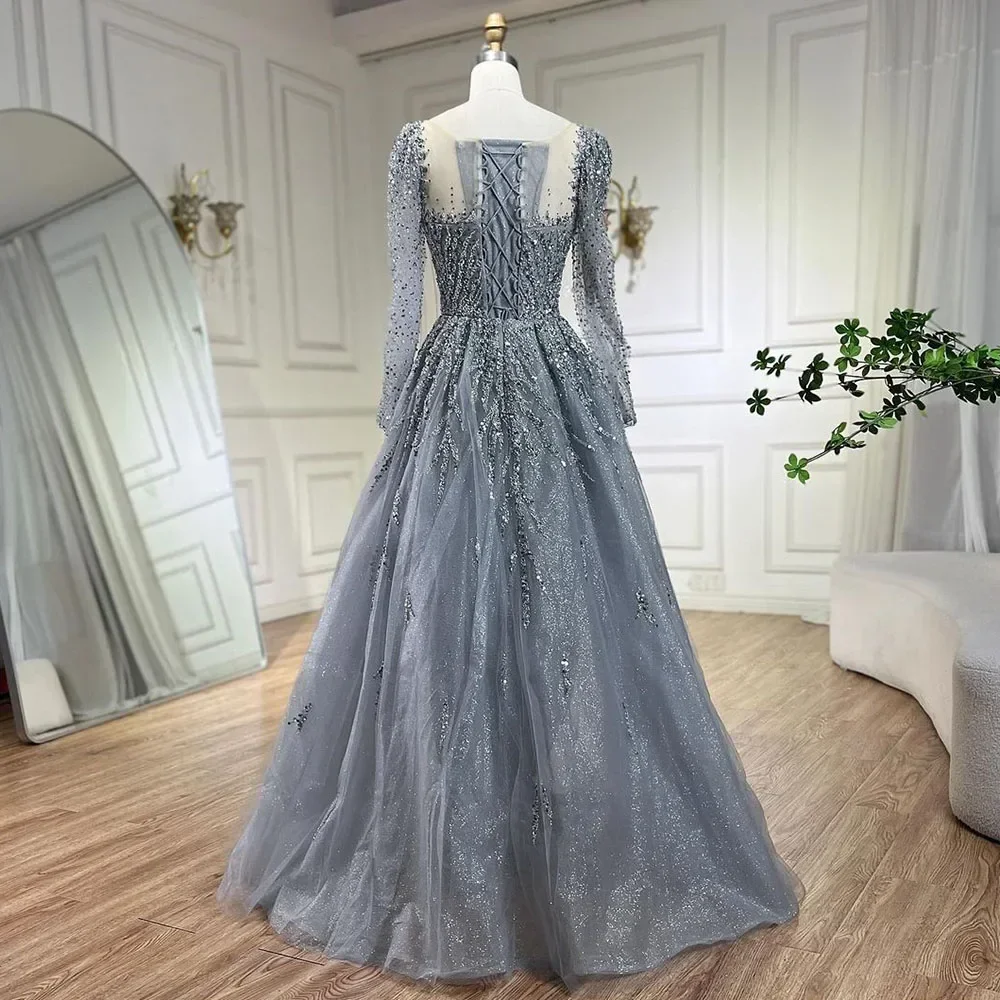 Wasisi Customized Muslim Pink A Line Beaded Luxury Dubai Long Evening Dresses Gowns 2025 For Woman Wedding Party ELA71915