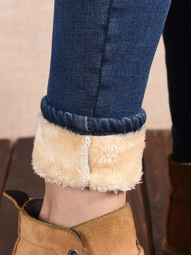 | women thicken winter pencil jeans | casual skinny lamb fluff warm denim pants |
