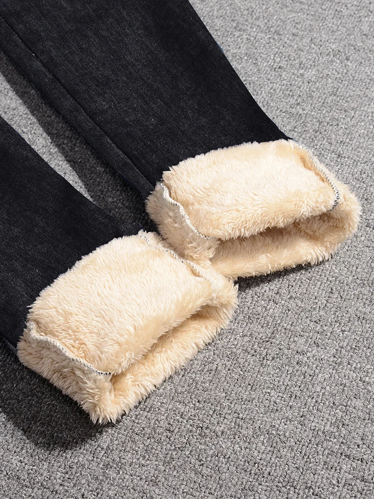 Winter Pencil Jeans Women Thicken Lamb Fluff Skinny Denim Pants High Waist Warm Lambwool Lined Stretch Vaqueros Big Size 34 Jean