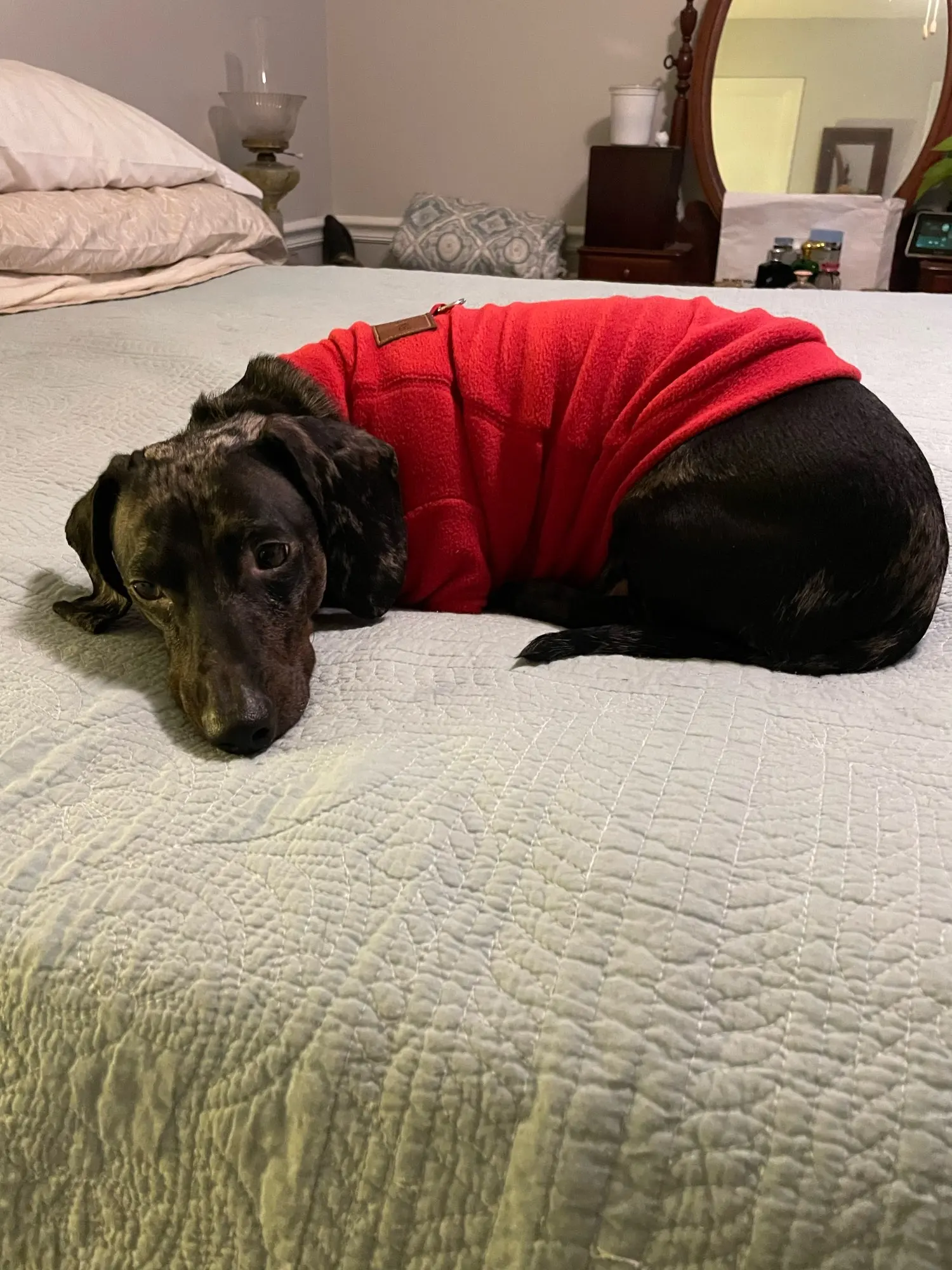 Great quality shirt for my fur baby! Well sewn and true to size. Only took six days to arrive in the us. Would definitely buy from this seller again. Five stars! !