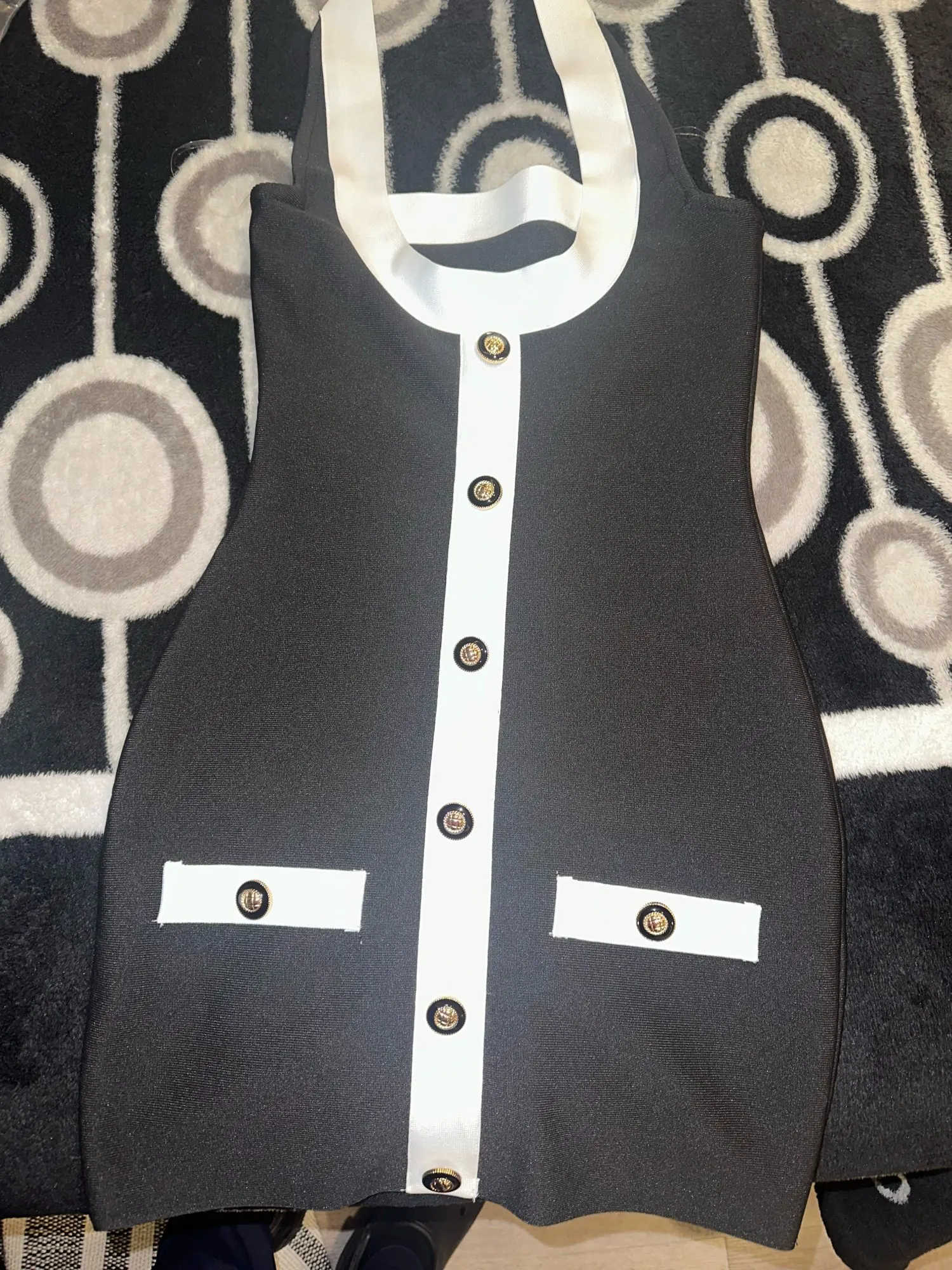 3 reviews for Women High Street Black White Bordure Single Breasted Halter Bodycon Mini Bandage Dress Soft And Comfortable Daily Dresses