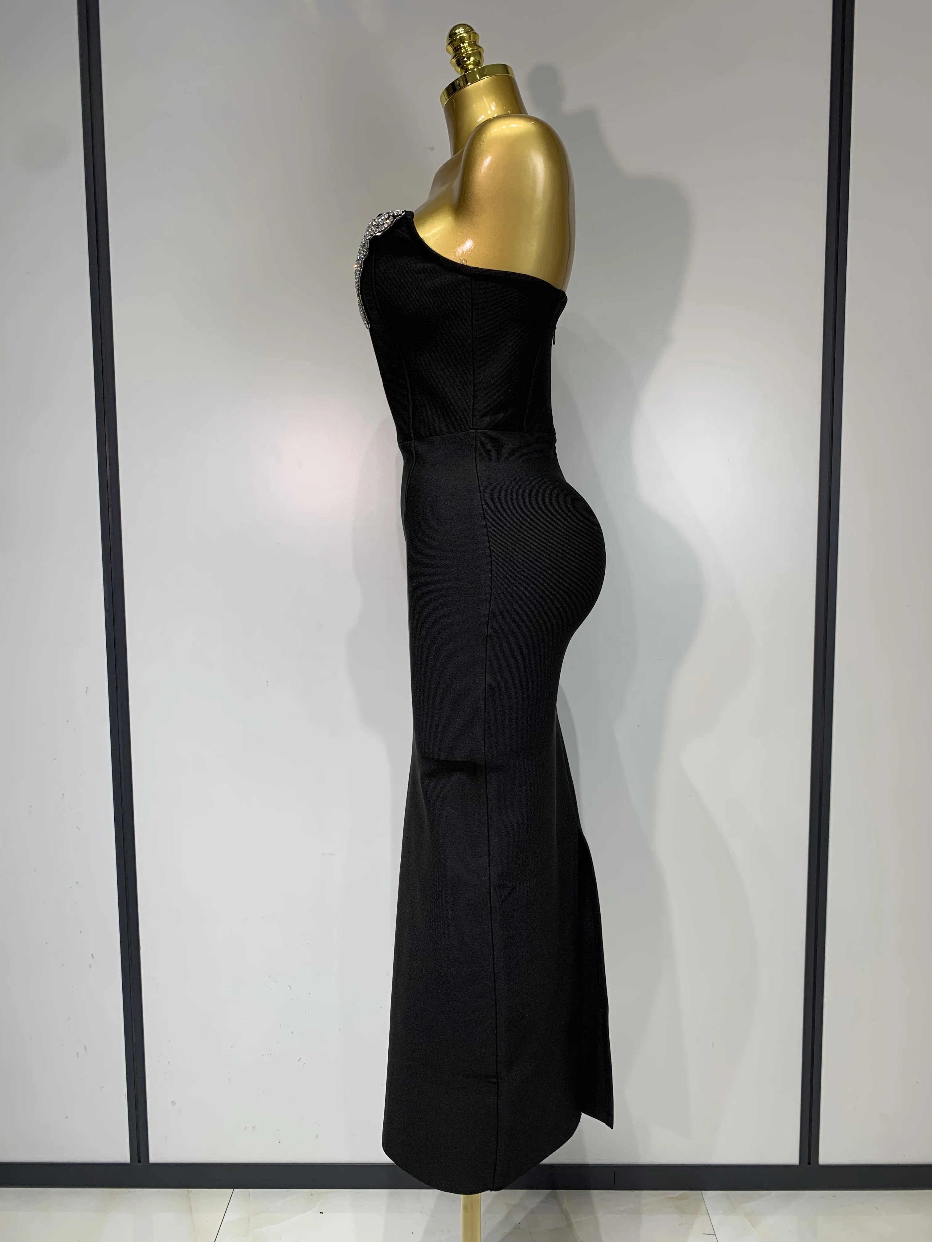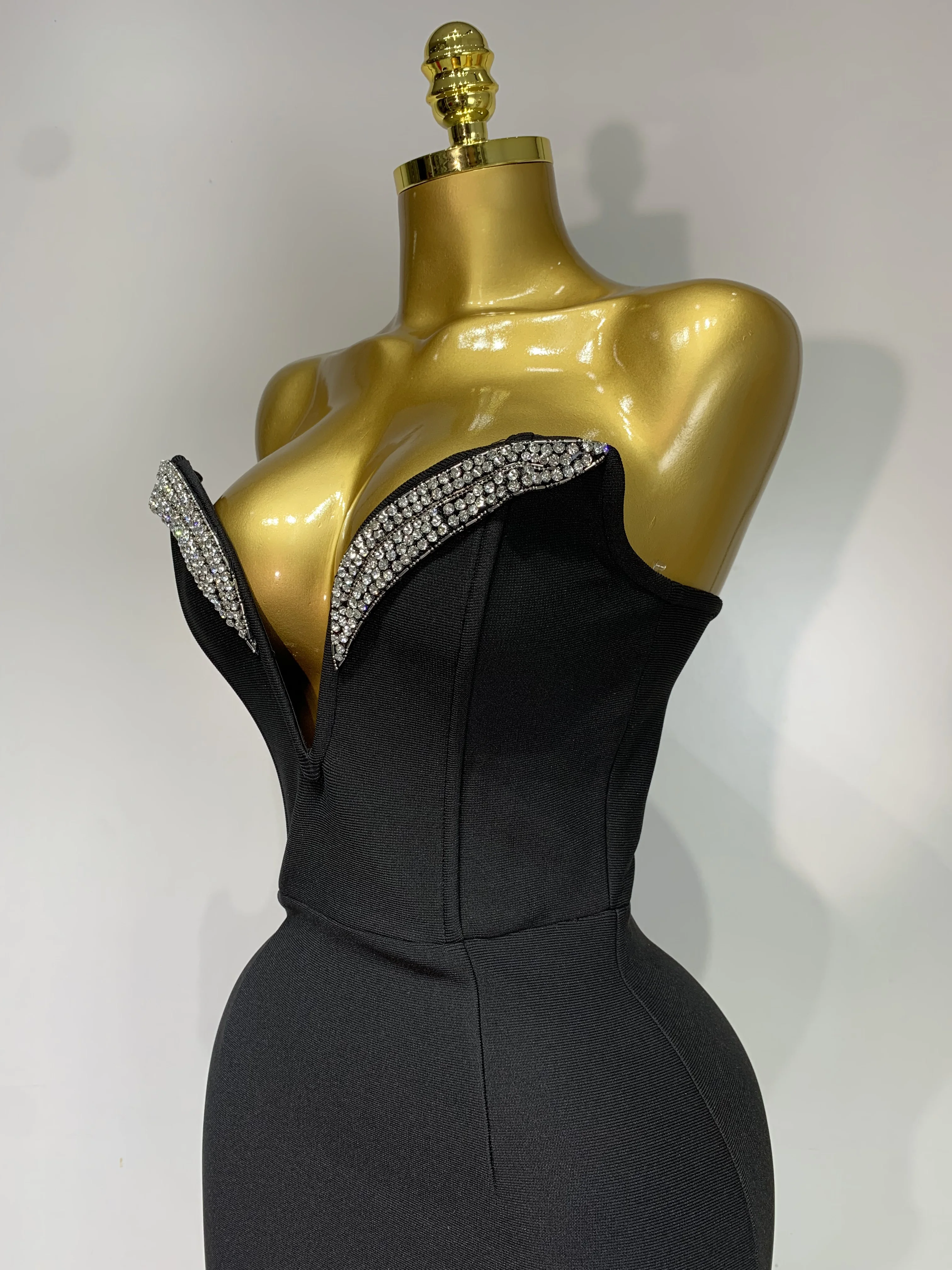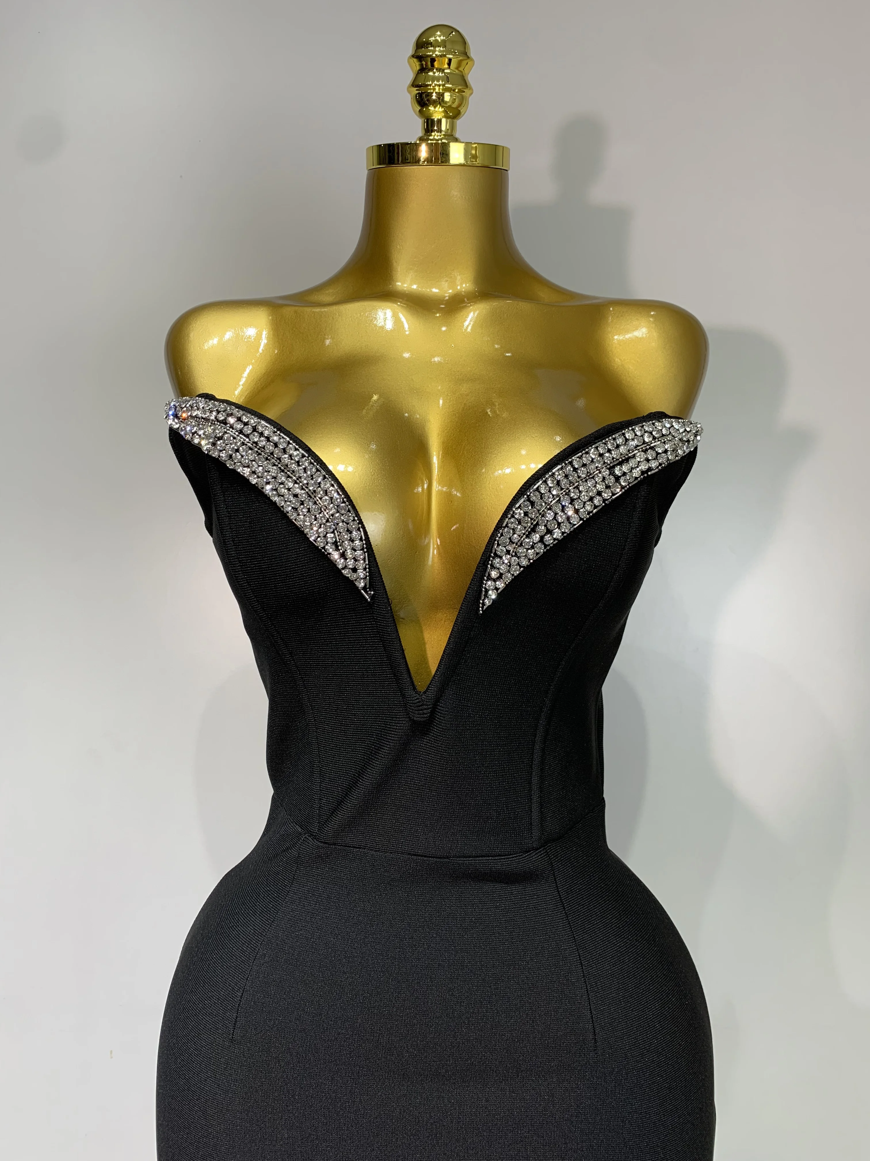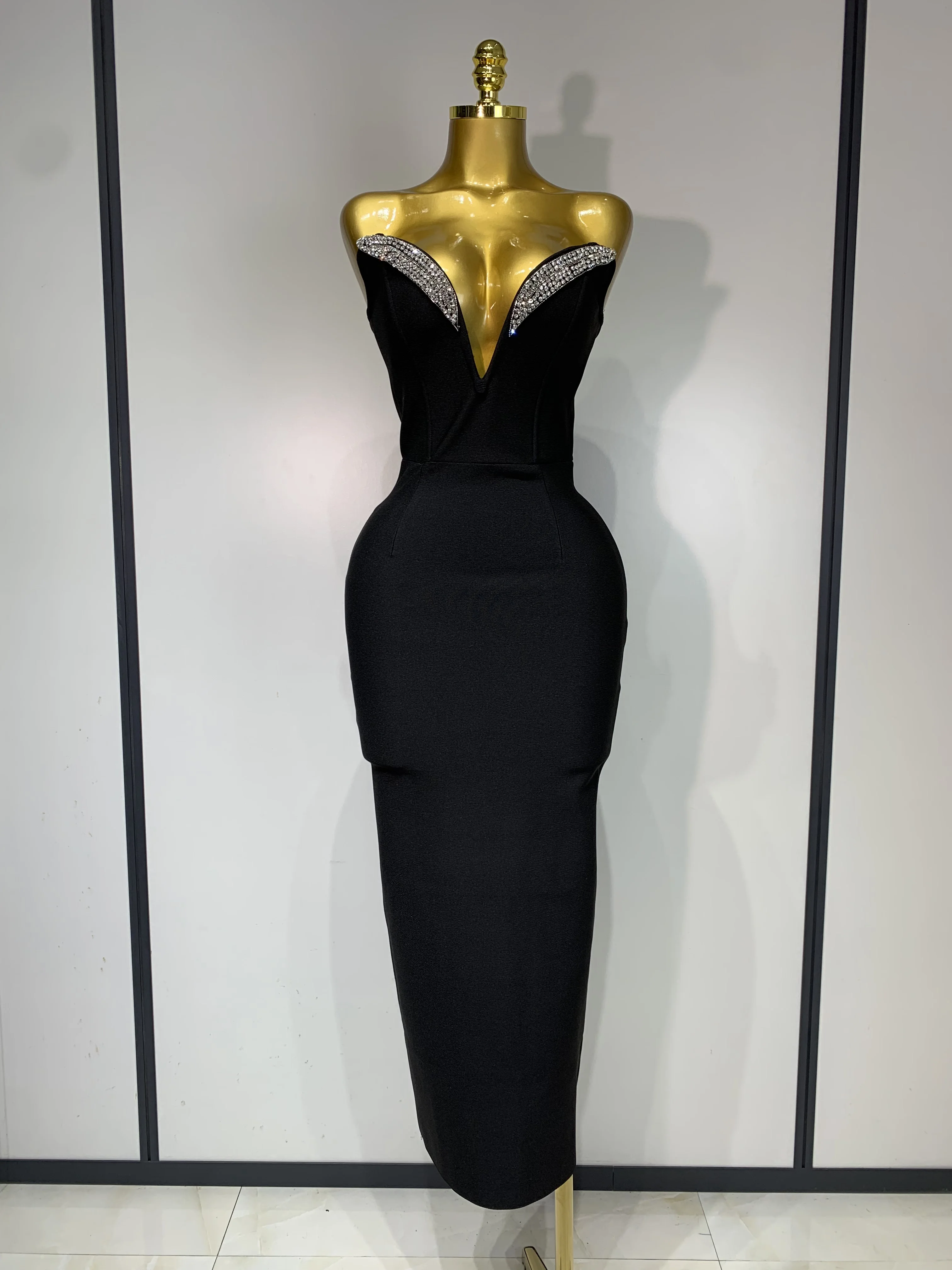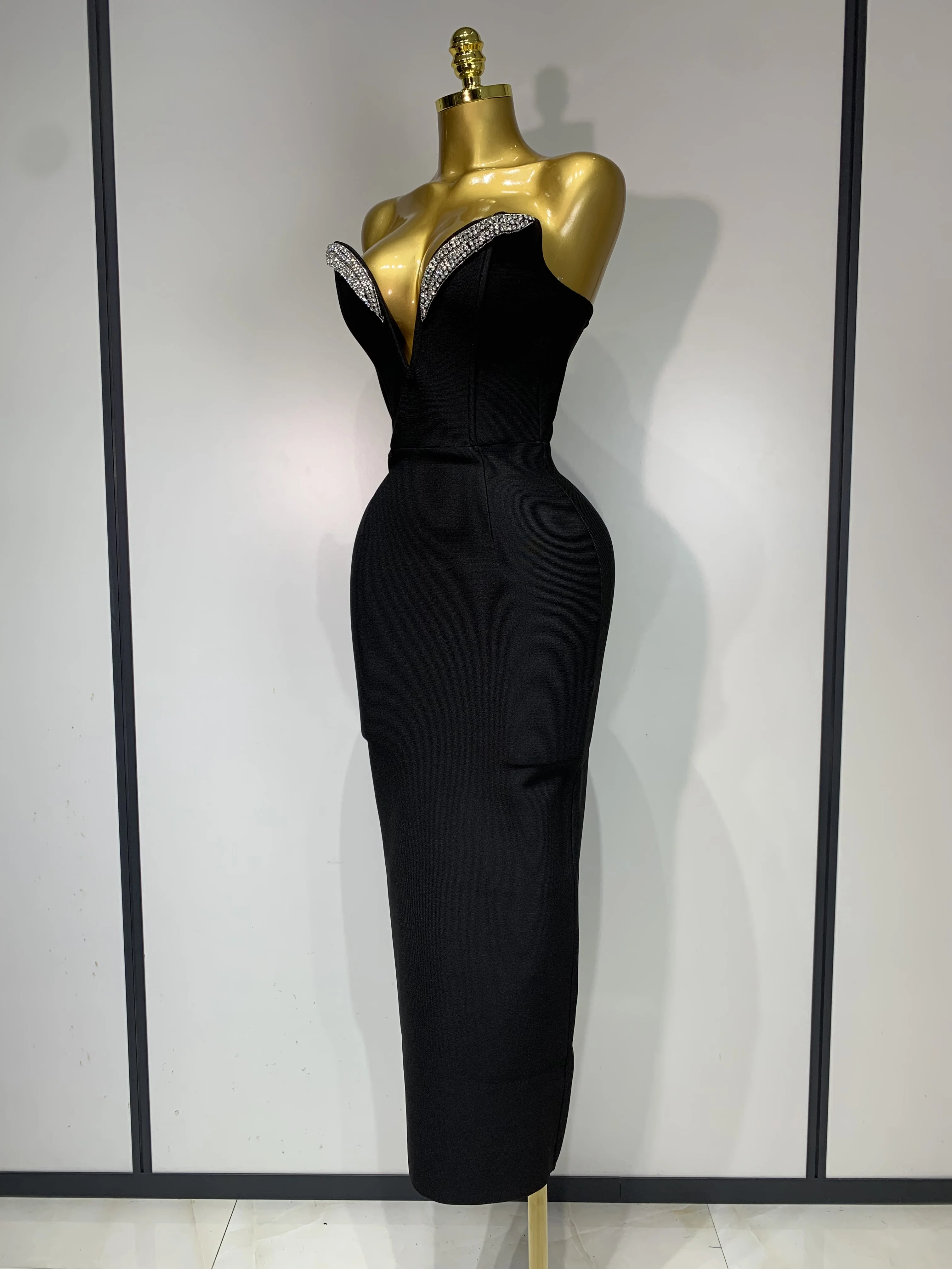 1 review for Women Sexy Strapless Sparkly Rhinestones Bodycon Bandage Long Dress Fashion Celebrate Evening Party Luxury Birthday Dresses