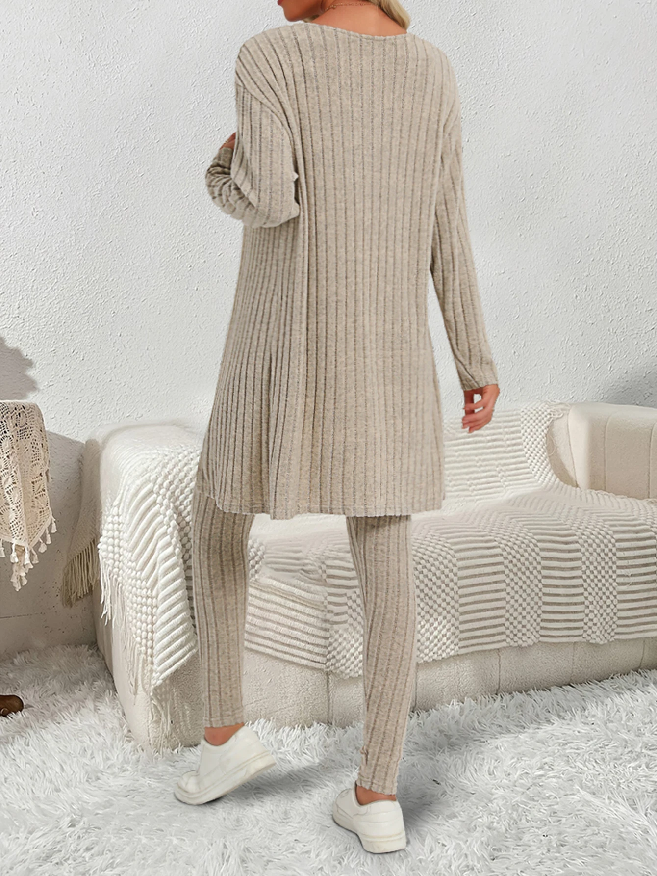 1 review for Women’s Drop Shoulder Long Sleeve Ribbed Cardigan Sweater Vest and Pants Set