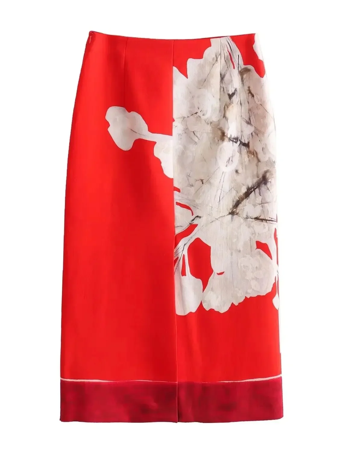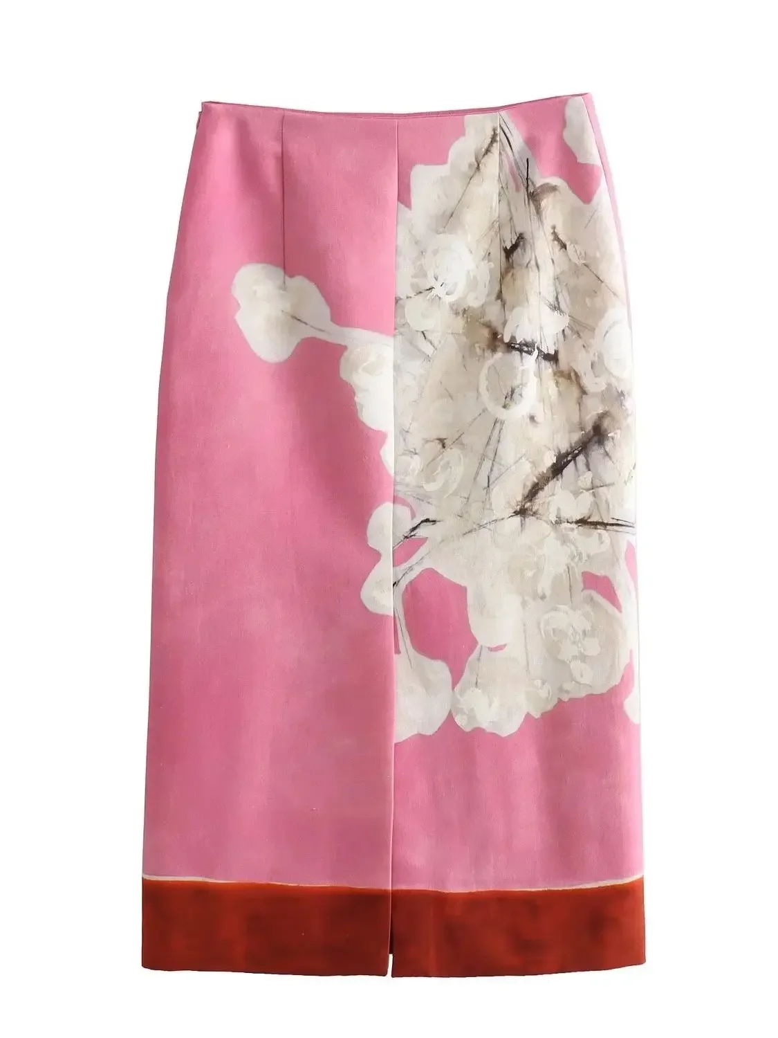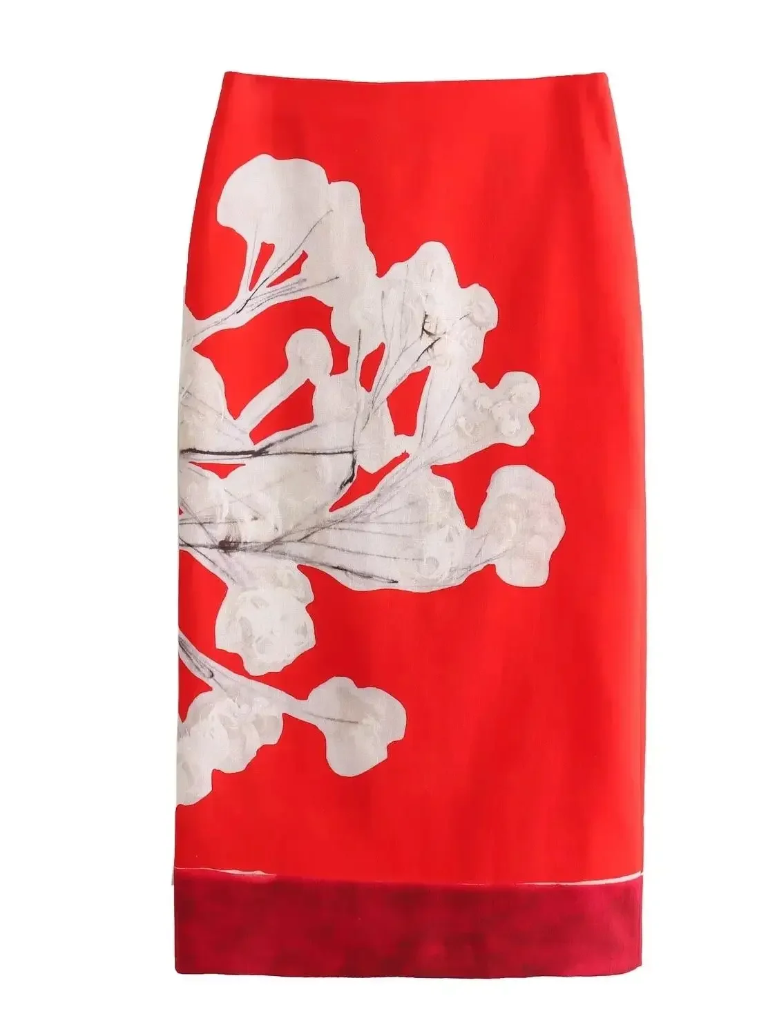 Women’s vintage high-waisted print skirt Women flax blend straight tube MIDI skirt