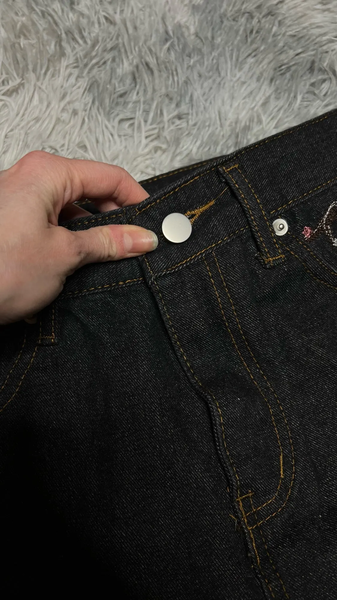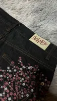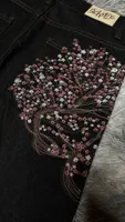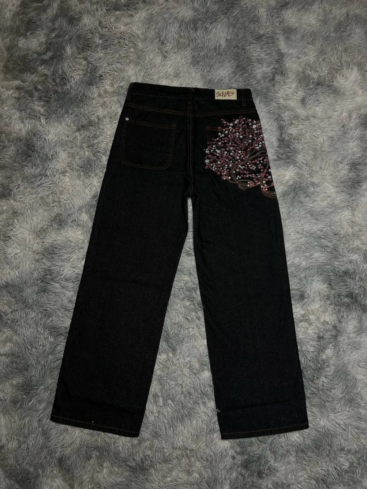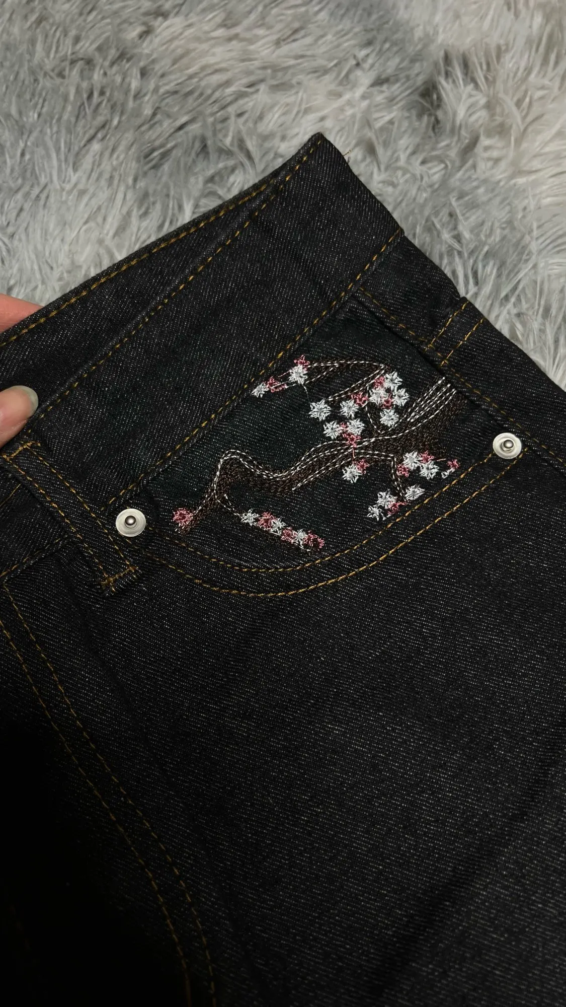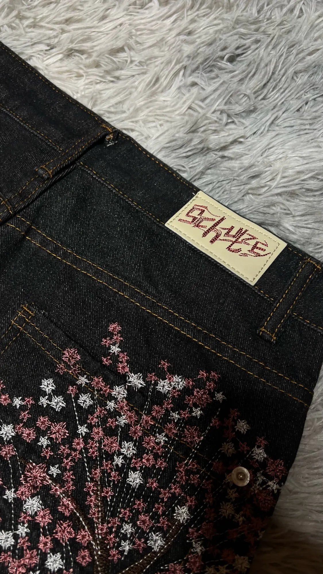 Cherry Blossom Selvedge Embroidery Denim Pants Y2k Retro Men Casual Baggy Straight Wide Leg Jeans High Quality Hiphop Streetwear